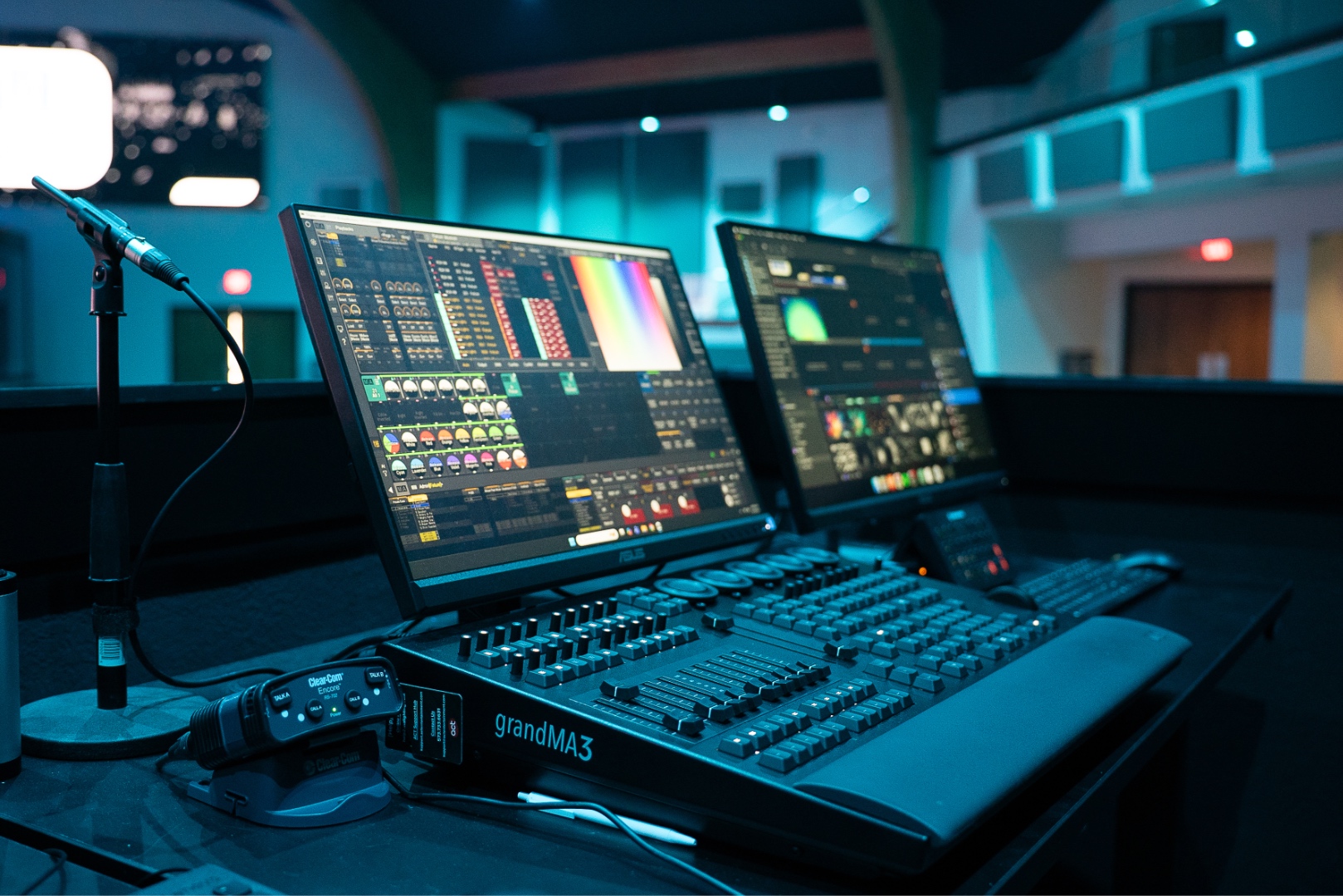 Lighting upgrades included the installation of new ellipsoidal and moving key fixtures to improve their live stream and dynamic control, along with new The Light Source RGBW house lighting to modernize the room aesthetic and improve a smoother coverage in the room. New lighting network nodes were installed, and both existing and new fixtures were configured into the new GrandMA3 Command Wing. Console programming was completed with standardized presets to support consistent operation by staff and volunteers.